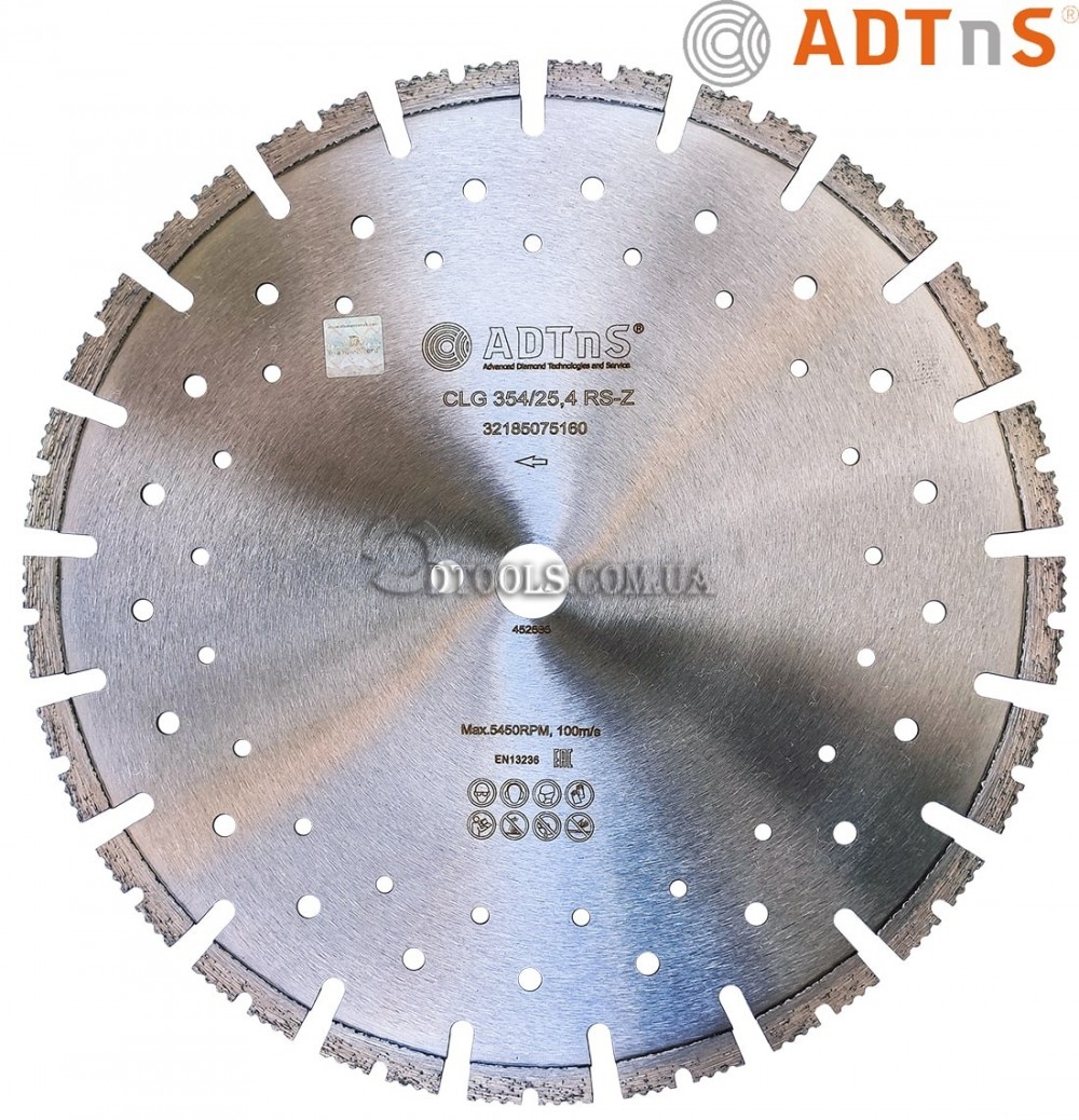 В линейке ADTnS RS-Z существуют 3и диаметра 300, 350 и 400 мм. Высота алмазного сегмента составляет 10 мм. Прочное удержание зуба на корпусе благодаря лазерной наварке делает диск более долговечным в эксплуатации и устойчивым к самым тяжелым работам связанные с демонтажем любых материалов: кирпич, бетон, железобетон с арматурой до 22 мм. А прочный корпус с технологическими круглыми пазами служит для эффективного теплоотвода что дает возможность работать сегментным диском не только с водяным охлаждением, но на сухую.