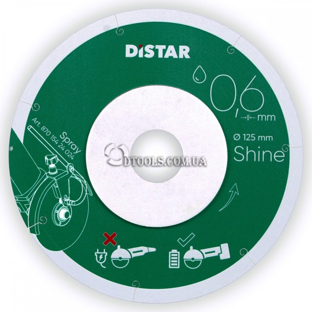/ Вариант: ⌀101,6x0,6/0,5x6x22,23 / Артикул: 11133034025 1690 грнDistar Shine диск для аккумуляторных УШМ. Тонкий рез 0,6 мм без сколов, работа с водой, минимальный шум и высокая скорость.