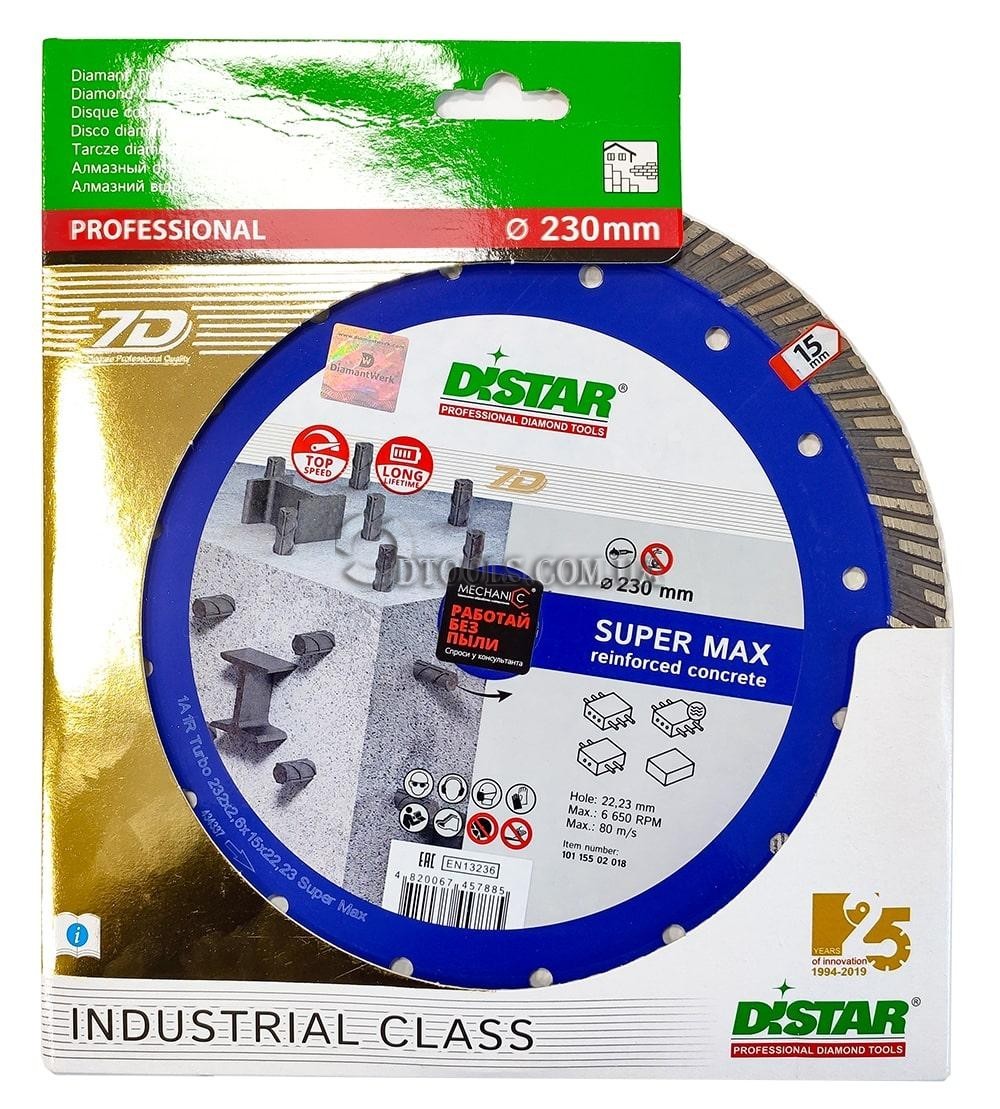 Диск для резки железобетона на ушм 230 мм Distar Super MAX 7D инновационный алмазный турбо диск с полезной высотой алмазного слоя 15мм.