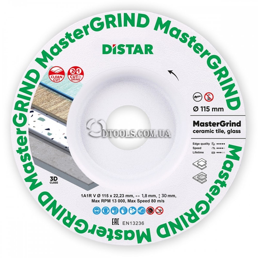 / Вариант: Ø115x1,8/1,5x30x22,23 / Артикул: 87015424065 555 грнЧистый рез и шлифовка плитки без сколов. MasterGRIND 115 мм решение 2 в 1.