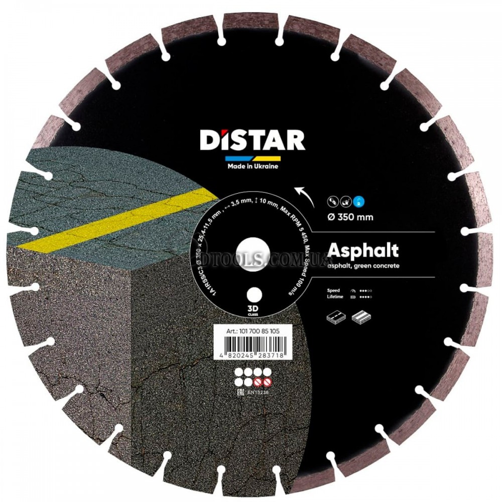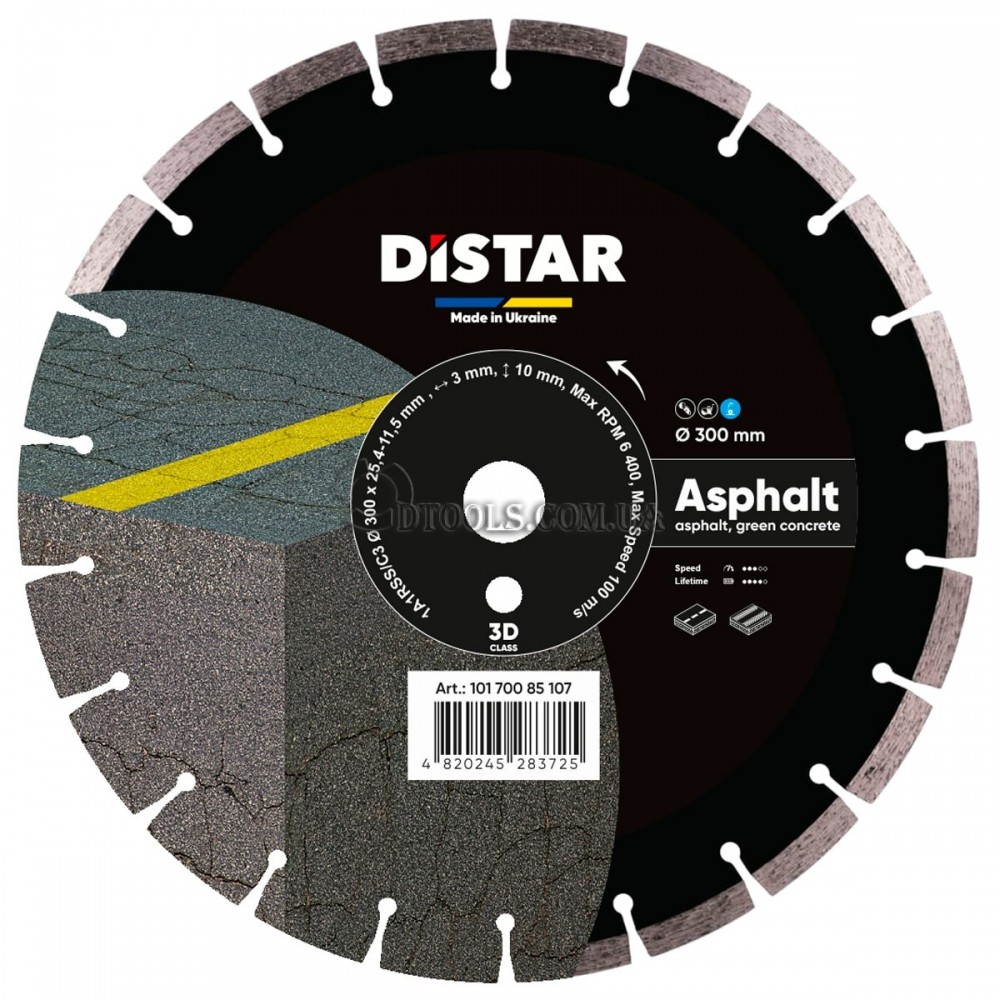 / Вариант: 300x3.0x10x25.4 / Артикул: 10170085107 2820 грнАлмазный диск Distar Asphalt для резки асфальта. Диаметры 300–450 мм, с водой.