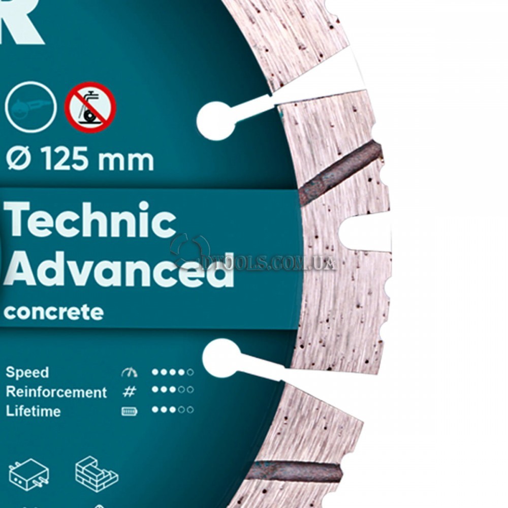 / Вариант: 115x2.2x10x22.2 Technic Advanced / Артикул: 14315347009 650 грнКруг алмазный Distar Technic Advanced отрезной круг для резки слабоармированного бетона, огнеупоров, кирпича, известняка.
