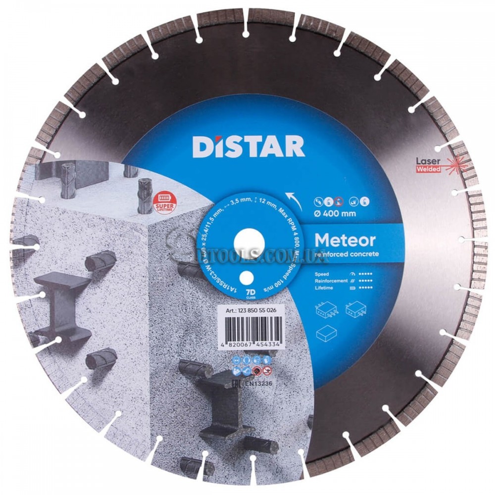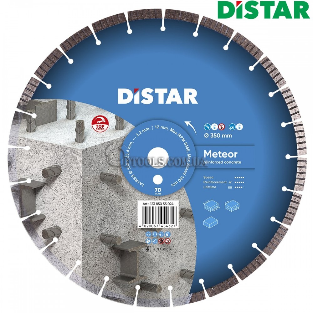 / Вариант: 300x2.8x10+2x25,4 Meteor / Артикул: 12327055022 4190 грнКруг алмазный по железобетону Distar Meteor сверх крепкий алмазный диск по работе с сильными бетонами, гидротехническими бетонами, аэродромными плитами с большой степенью армировки до 32мм.