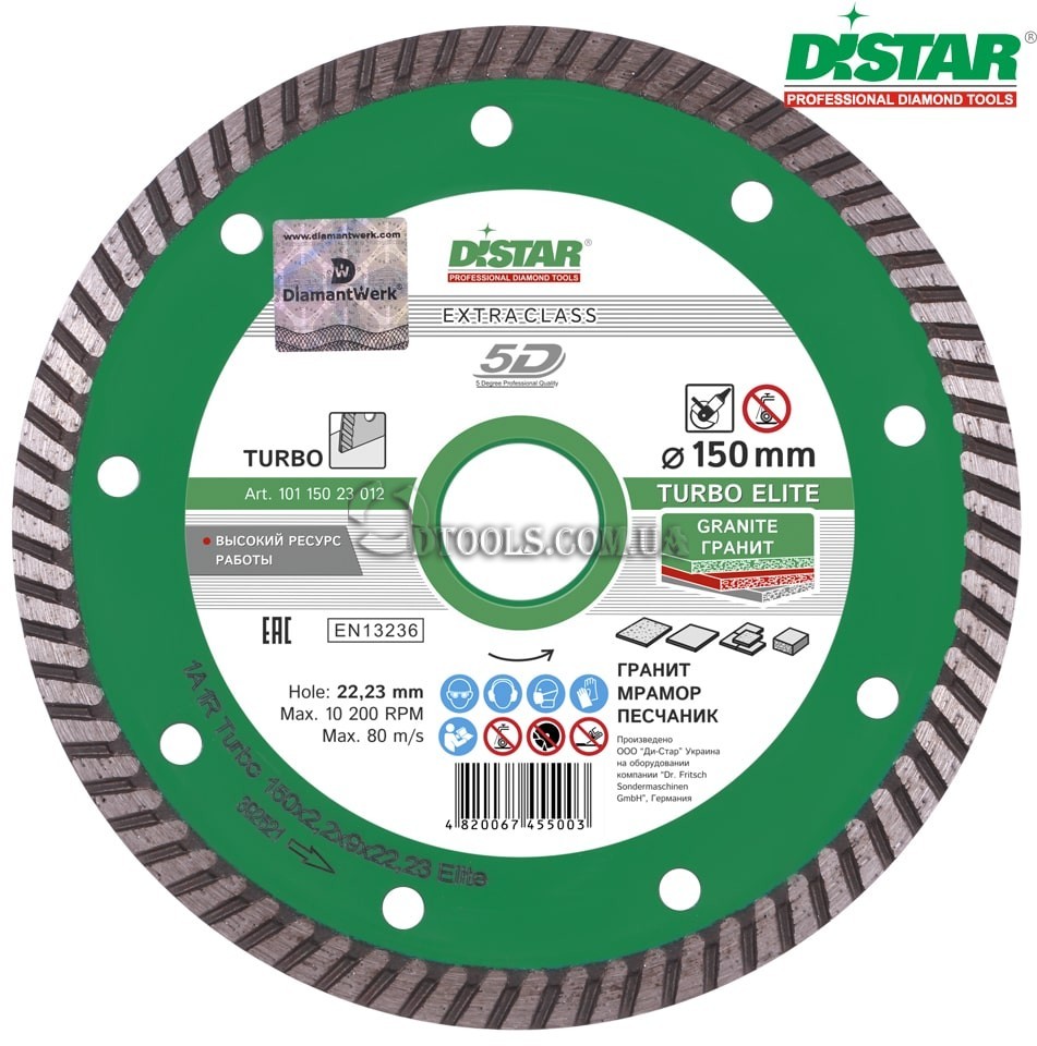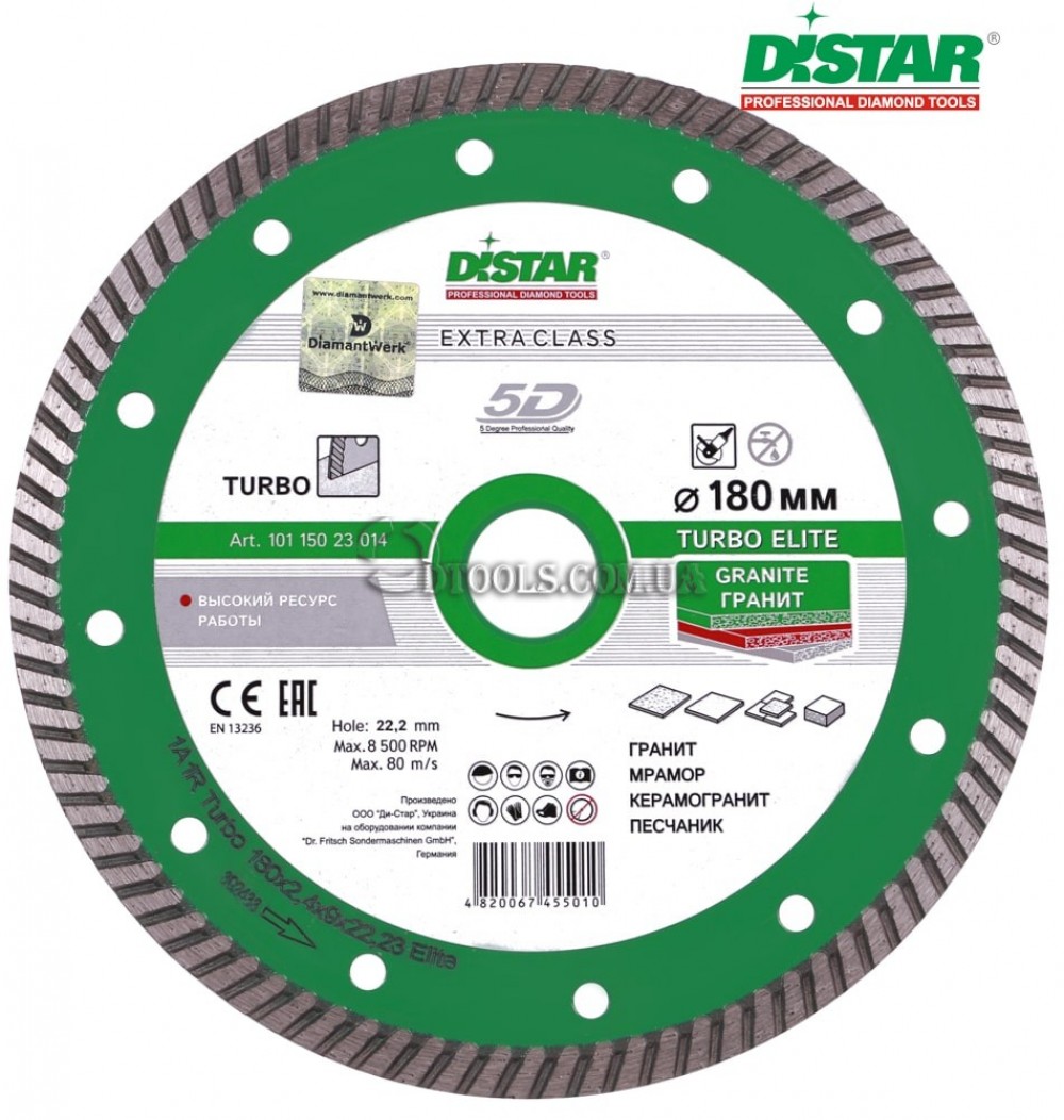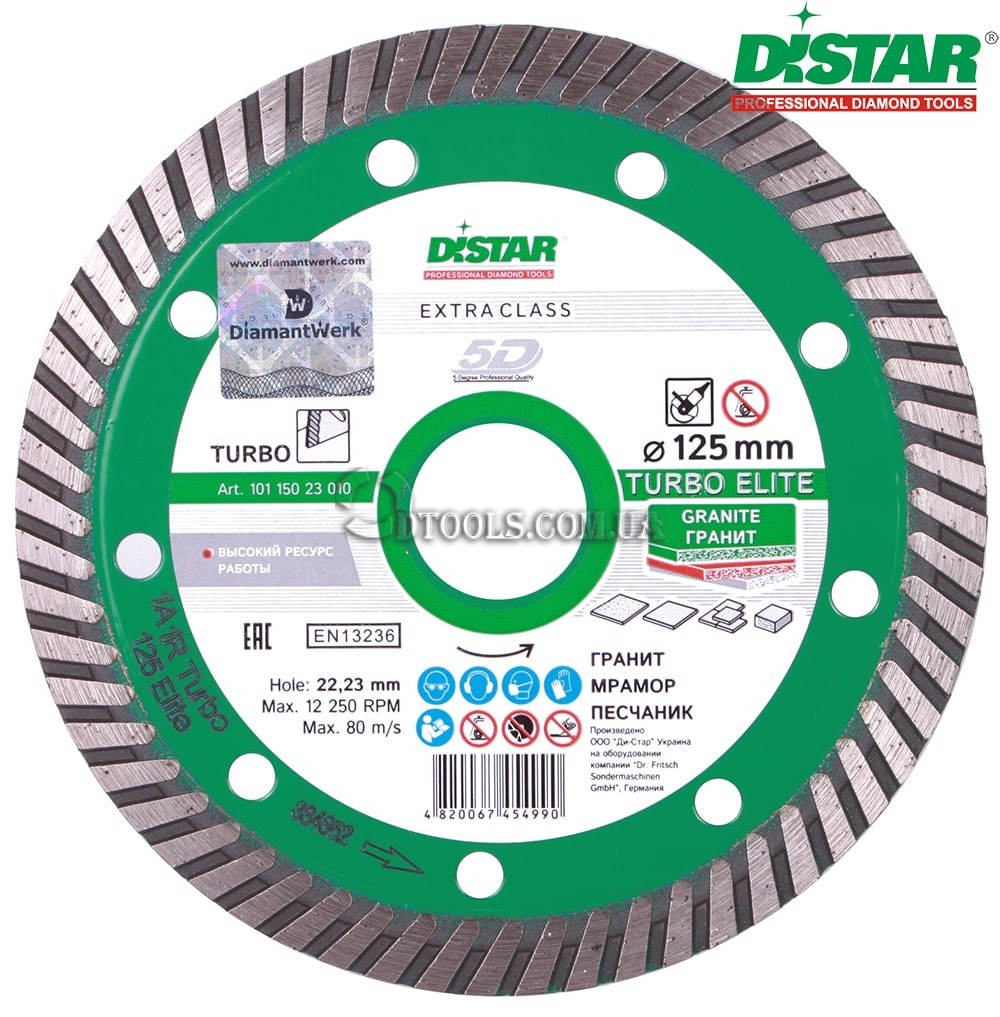 Круг алмазный Distar Turbo Elite отрезной диск используется на углошлифовальные машины (УШМ) мощностью от 1.2 кВт. Диск Distar Turbo Elite с большим ресурсом по цветным гранитам 1-5 категории твердости. Ресурс алмазного диск Distar Elite до 6 м.кв в площади реза. Линейка 5D Экстра класса Дистар диаметром от 115 до 180мм.