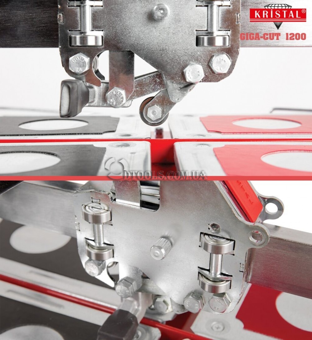 Благодаря механизму каретки, оснащенной подшипниками, Кристал ГИГА-КАТ 1200 имеет плавный ход, что позволяет выполнять более точную безошибочную резку толщиной плитки от 3 до 23 мм. С помощью дополнительных опорных ножек удобно работать с плиткой большого формата. Откидной боковой упор-линейка с двумя миллиметровыми шкалами.