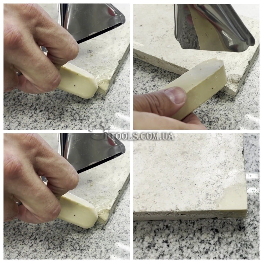 В линейке представлены три оттенка: Nero (чёрный), White (белый) и Paglierino (бежевый). Каждый вариант подобран под тип камня: Nero - для тёмных пород (гранит, базальт, габбро), White - для светлого мрамора и травертина, Paglierino - универсальный вариант для кремовых и бежевых материалов. Все воски прекрасно полируются, скрывают микротрещины и дефекты, возвращая камню природную глубину цвета.